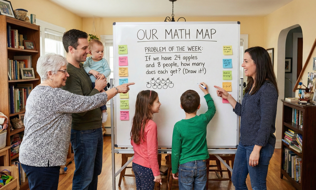 A Math Map turns your home into an interactive math zone. Instead of worksheets hidden in folders, ideas live visibly; encouraging curiosity, family participation, and connection.